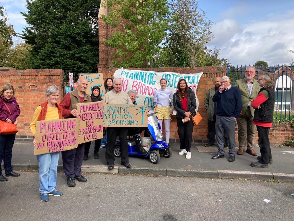 In 2023 we woke up one day to find a circle and cross splodged outside Perrott’s Folly. We soon realised we had been earmarked for a monstrous 10 meter pole outside the Folly, despite this being in breach of planning regulations. This started an 18 month campaign to stop the Alt Net responsible from putting unnecessary poles outside places of significant heritage and people’s homes in the local area. We already have adequate fibre provision and understood the poles to be cheaper, not the only option. We don’t like things being forced upon the Folly, our organisation or our community, so we said ‘No’. Following a mix of campaigning, protesting and emails, our local MP has just raised the issue in a debate in parliament.